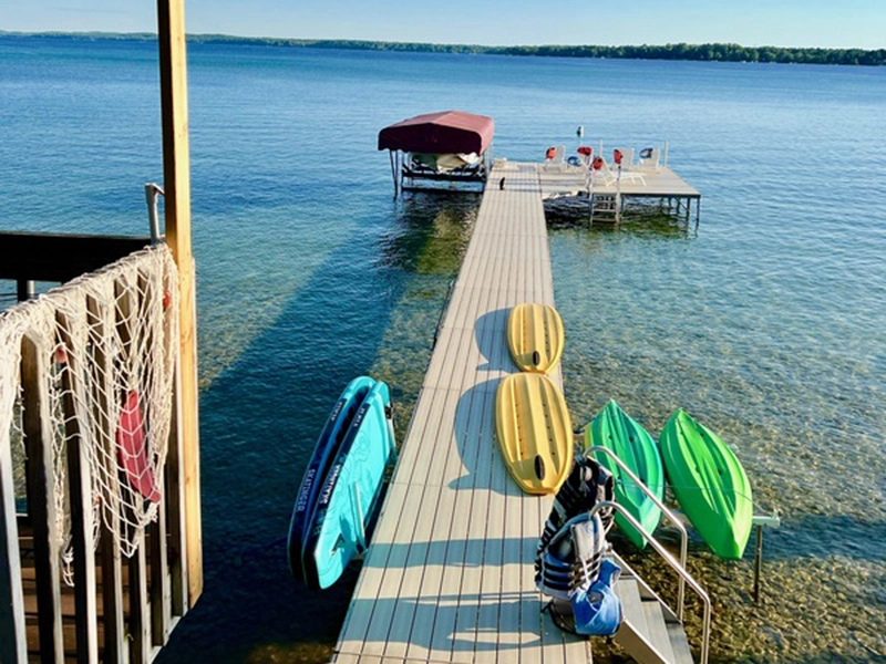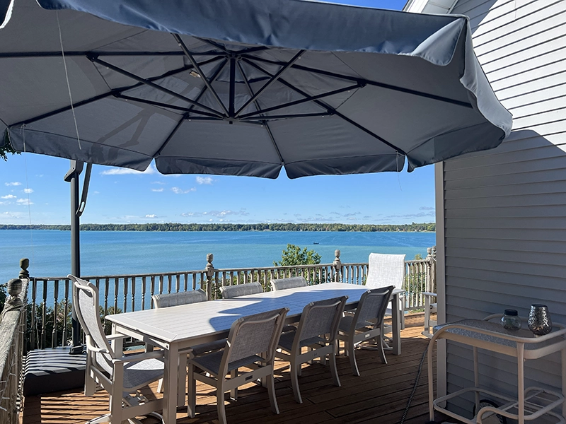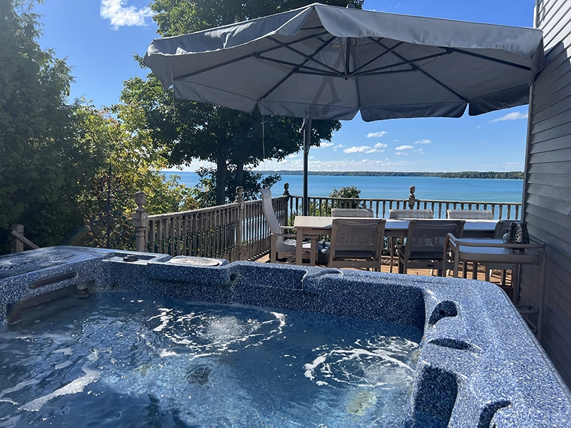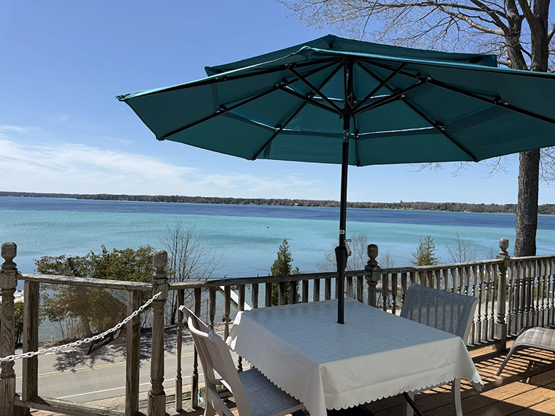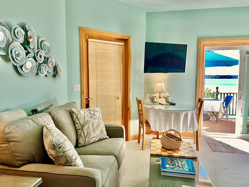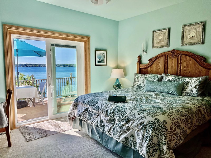 The Sunset Suite is our most luxurious suite. Located on the main level, the Sunset Suite features a private walk out balcony with spectacular views of 18 miles of Torch Lake. Stretch out on your king size bed relax and watch a movie on your flat screen tv, allow yourself to be pampered. In-room refrigerator and microwave and coffee pot for your convenience.